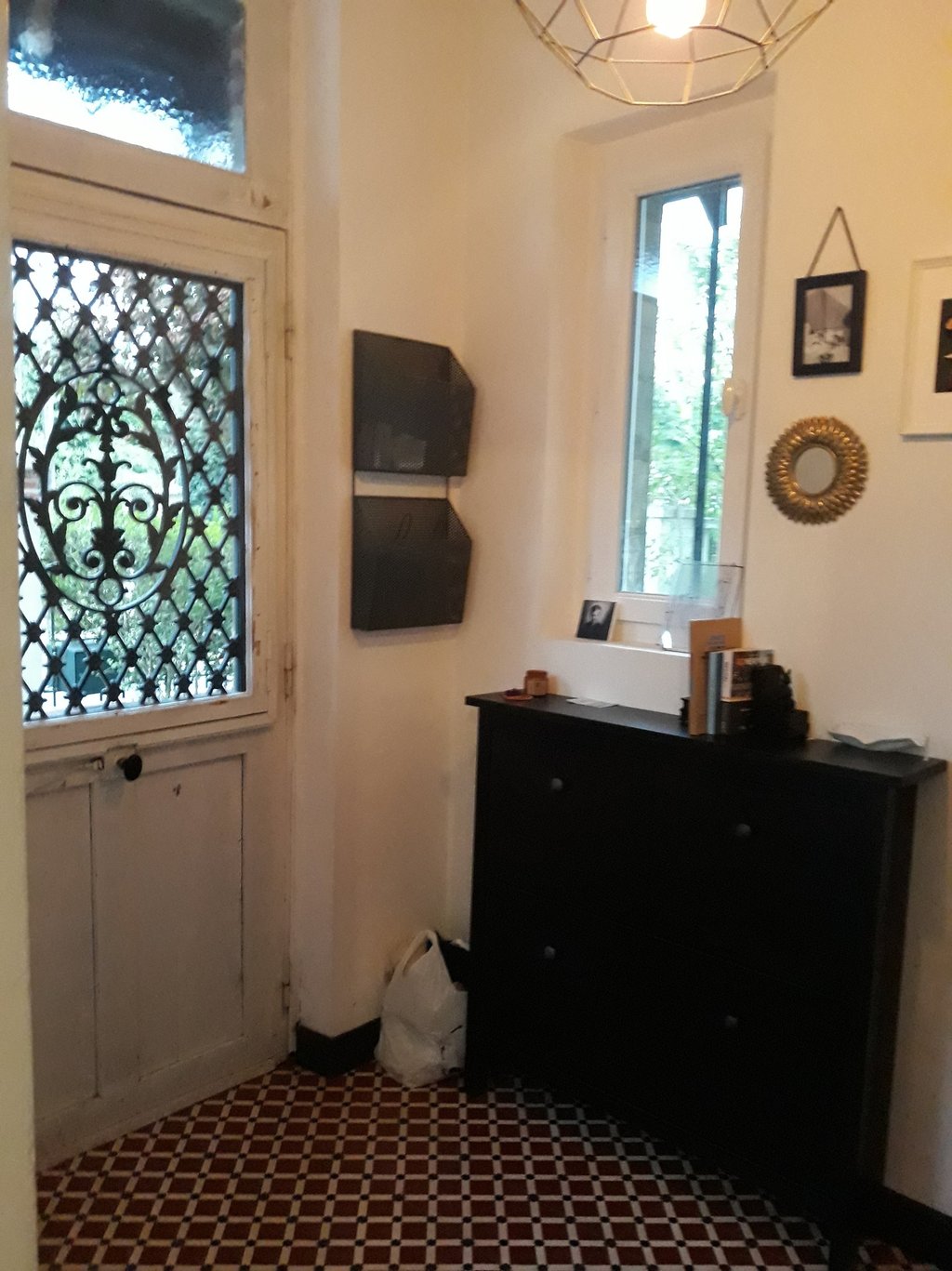 Comme nous conservons les sols qui représentent l’histoire de la maison, l’entrée a été agrémentée de moulures, d’un soubassement noir permettant une belle connexion avec les carreaux de ciment.